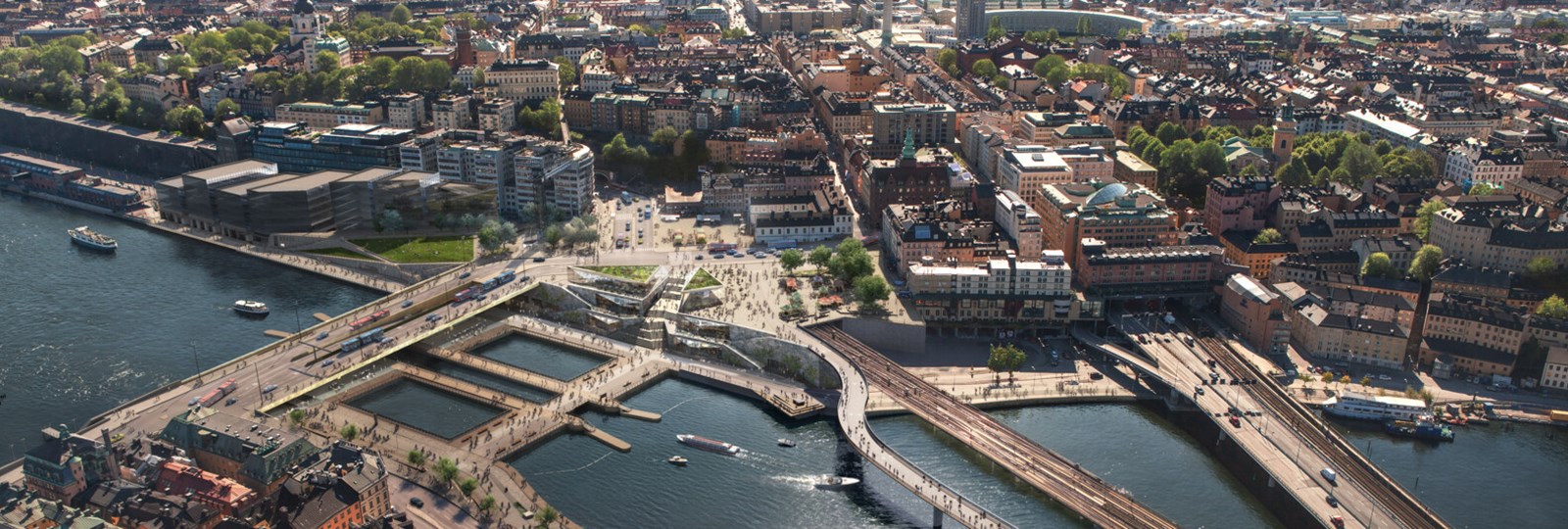 Slussen, en av Stockholms mest ikoniska platser, genomgår sin största omvandling på över 80 år. När området står färdigt kommer Slussen vara både ett viktigt kommunikationsnav och en fantastisk plats i staden med restauranger och gångstråk längs vattnet. Bilar och bussar längs Stadsgårdskajen flyttas ner under mark.