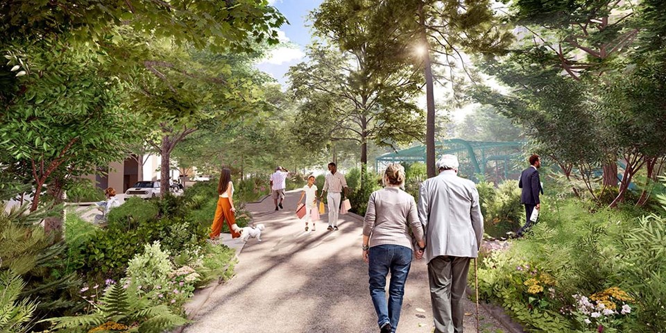 Visionsbild över Norra Stationsparken. Illustration: Stockholms stad
