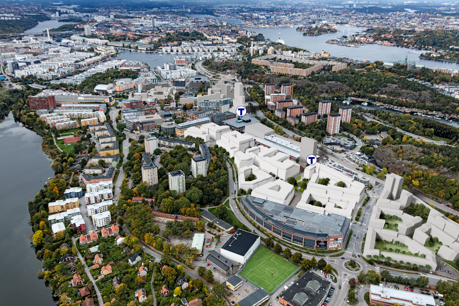 Sickla binder ihop Stockholms innerstad med Nacka. Fram till 2030 kommer den snabbt växande stadsdelen att utvecklas med ytterligare 150 000 kvm arbetsplatser, bostäder och handel, lagom till att nya tunnelbanan öppnar i Sickla. Illustration: Atrium Ljungberg